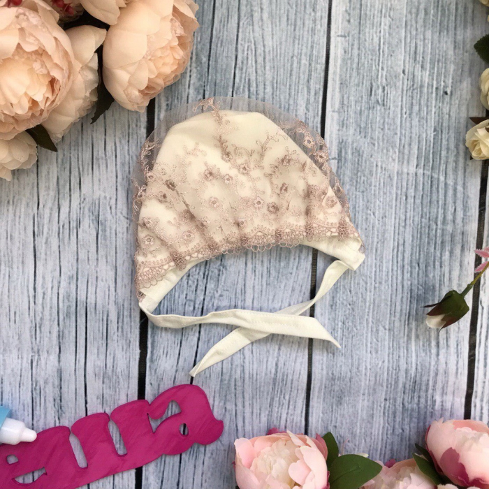 Теги: Купить детские чепчики оптом от производителя. 184. Чепчик с кружевом, хлопок 100 % интерлок цена,отзывы официальный сайт "Стеша Балашиха"