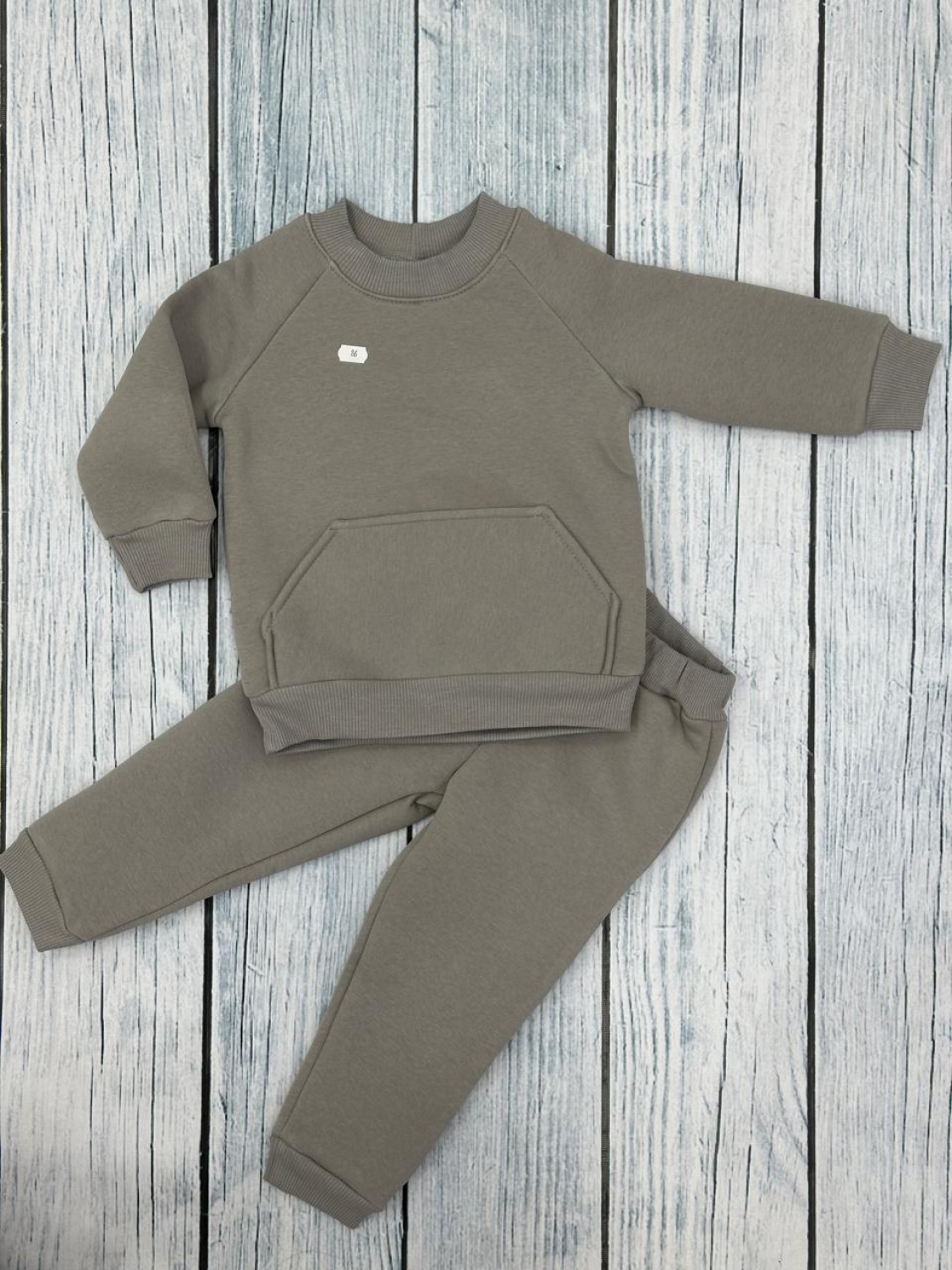 Купить оптом 297-СЕР. Свитшот + Штаны, хлопок 65%, 35% ПЭ, 3-х нитка (начес) серый ,80,86,92,98,104 в Балашихе