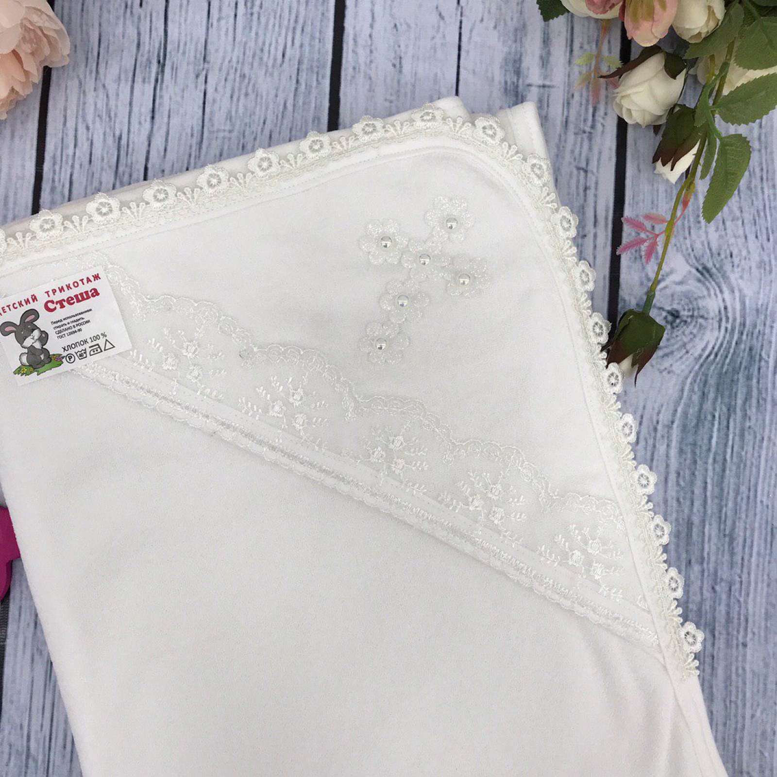 Теги: Купить оптом крестильное полотенце. 229. Крестильная пеленка, хлопок 100% Махра, молочный цена,отзывы официальный сайт "Стеша Балашиха"